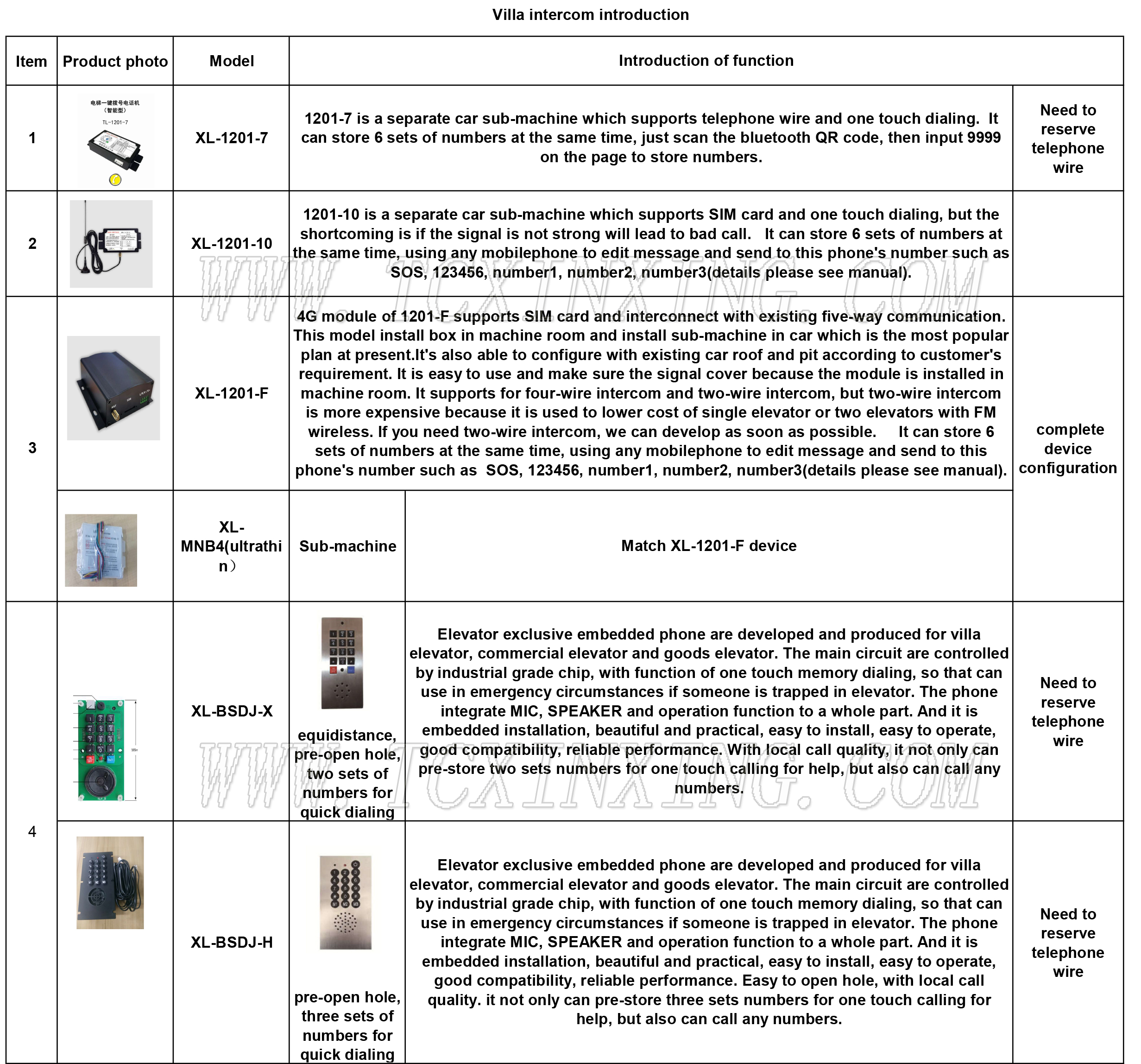 Here we listed several kinds intercom for villa elevator, some of them need telephone wire, some support SIM card..... Detalls please contact with us.